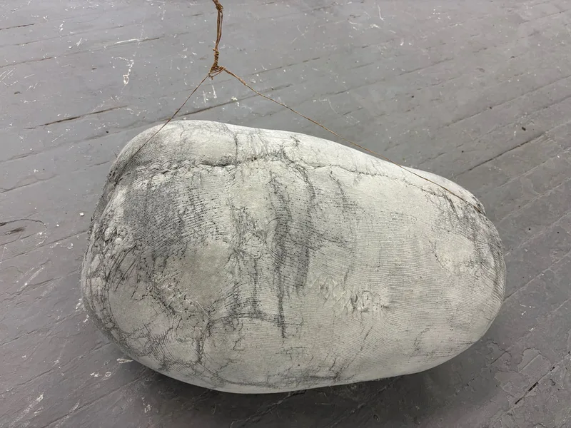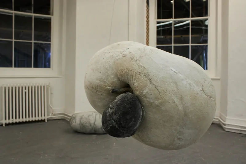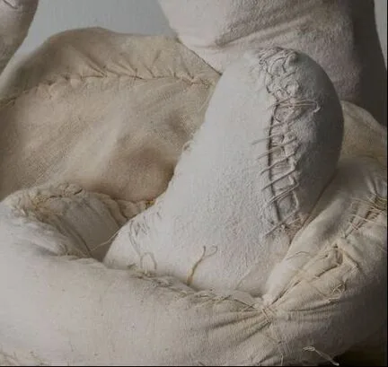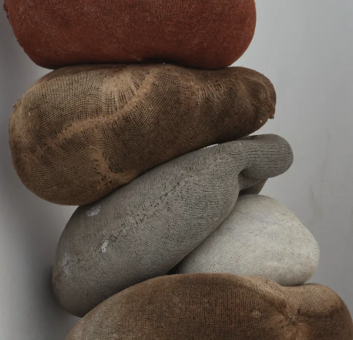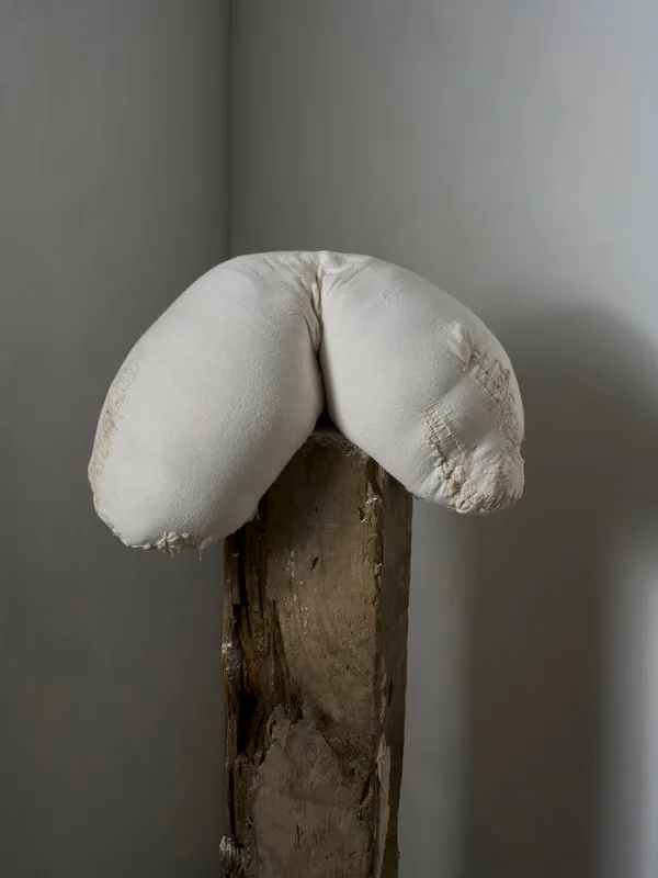 Contrasting my fired porcelain projects, my SYBL (See Your Body Later) project works with marble dust, fabric and found flint. Stardusters reimagine sculptural materiality through a sensuous engagement with weight, breath, and transformation. Traditionally dense and rigid substances, marble dust, crushed flint, and porcelain, are sewn into soft muslin bodies, creating forms that are entirely moveable and self-supporting. These works act like permeable skins, fusing surface and content in an ever-shifting state of expansion and contraction, echoing the act of breath at its fullest.