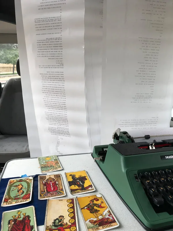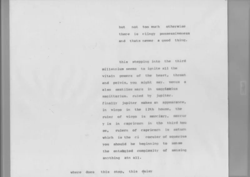 Predictive Text 01.01.3000 is a durational trance-writing piece made with vintage electric typewriters and ritualised materials, exhibited as a site-responsive installation. Ten 20-metre scrolls of streamed consciousness are suspended from the ceiling as analogue thought-clouds, invoking the in-between states of hypnagogia and dreaming. Based on the astrological chart marking the dawn of the Third Millennium, the text emerges through immersive trance-typing, echoing the Dead Sea Scrolls, Alice Bailey, W. B. Yeats’ spirit dictations, and Jack Kerouac’s spontaneous poetics. The work operates as both channel and chant—a speculative divinatory act that treats prediction not as certainty, but as an act of imagination and courage.