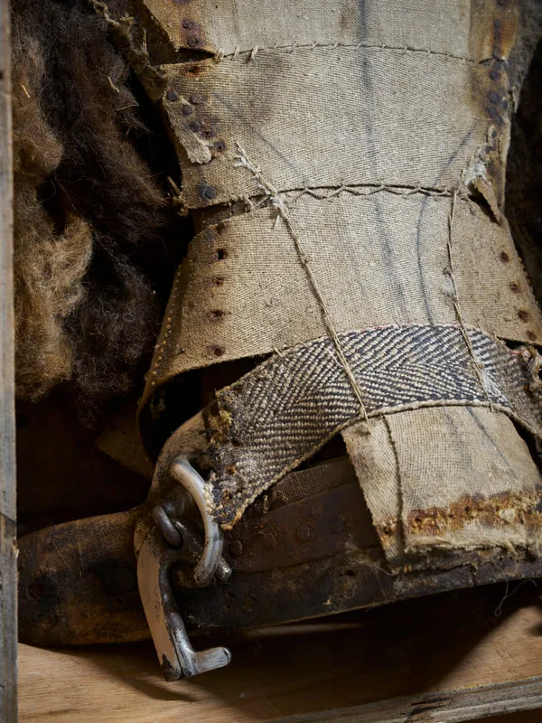 ,Twenty wool fleeces, cording, flocking, thread, muslin, metal, wood