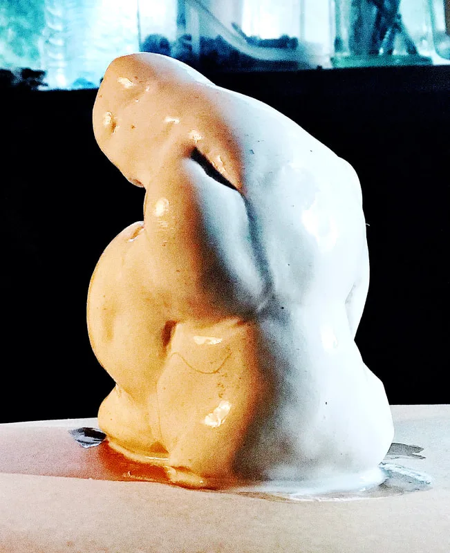 'At the core of my motivation is the ‘S’ shaped human spine that enables our bi-pedal uprightness not granted to apes. This is due to a small but significant difference in the neck and lower back region of the spine of humans. I relate this ‘s’ shape to the Buddhist and Vedic ‘s’ shaped energy flow known as tantra and kundalini spiral energy that energises and enhances elevation, and potentially levitation. Throughout my practice I strive to merge and dance, with the clay and pen, not to lose myself per se, but to modulate and render the ‘S’ pulse in 3D. This ‘S’ relates to Lyotard’s ‘libidinal pulse’, making my sculpture practice acts of performative emergence – and as a non-binary and non-dialectic methodology.