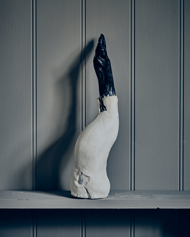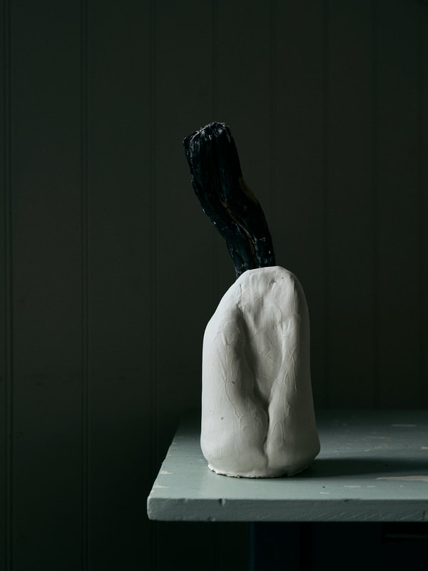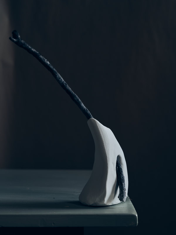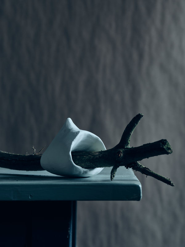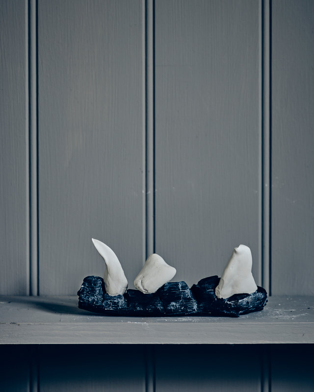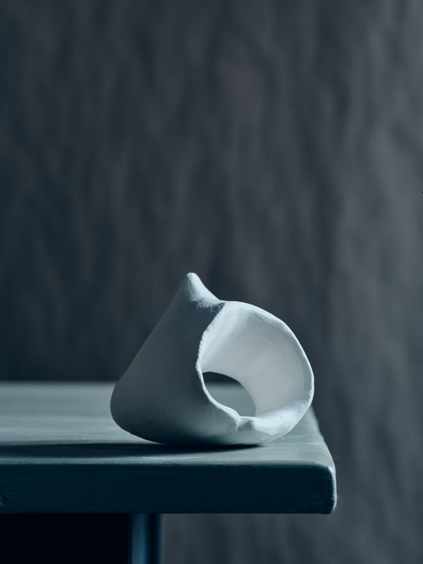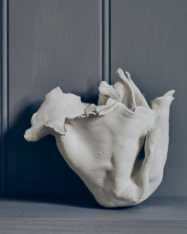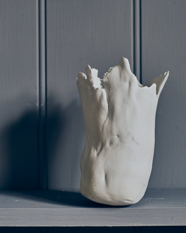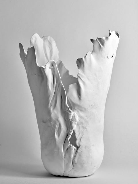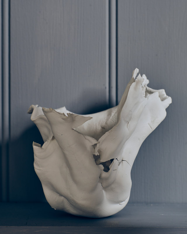 During the first lock down (covid-19 pandemic) I ordered several bags of my favourite clay and a few of porcelain to experiment with. The raw bone texture of the semi-fired material lends itself to further carving and paring by hand. The pieces above and below are prototypes for larger pieces, experimenting with fragmentation and erosion.
