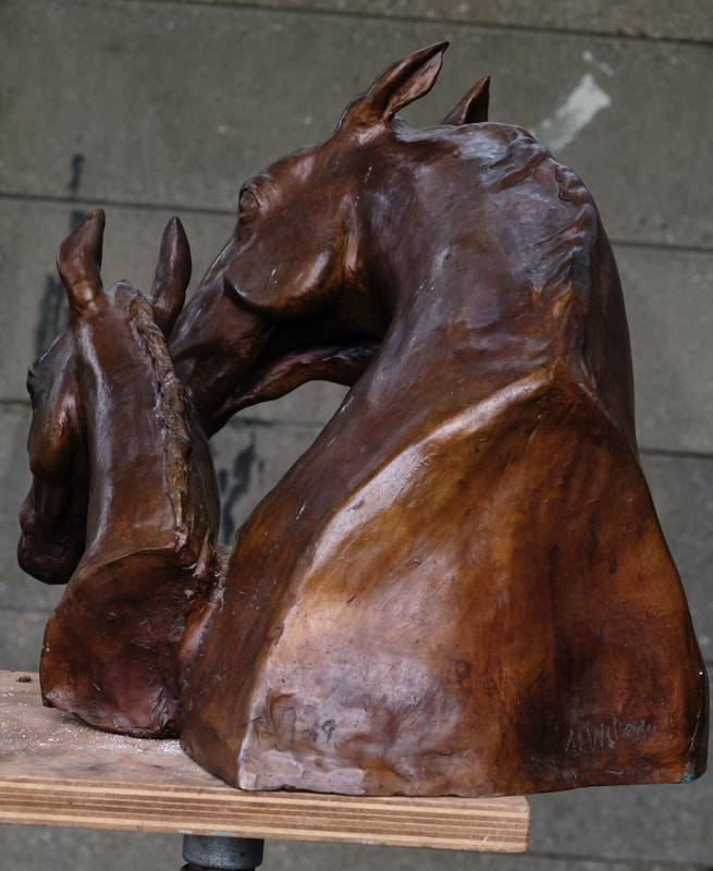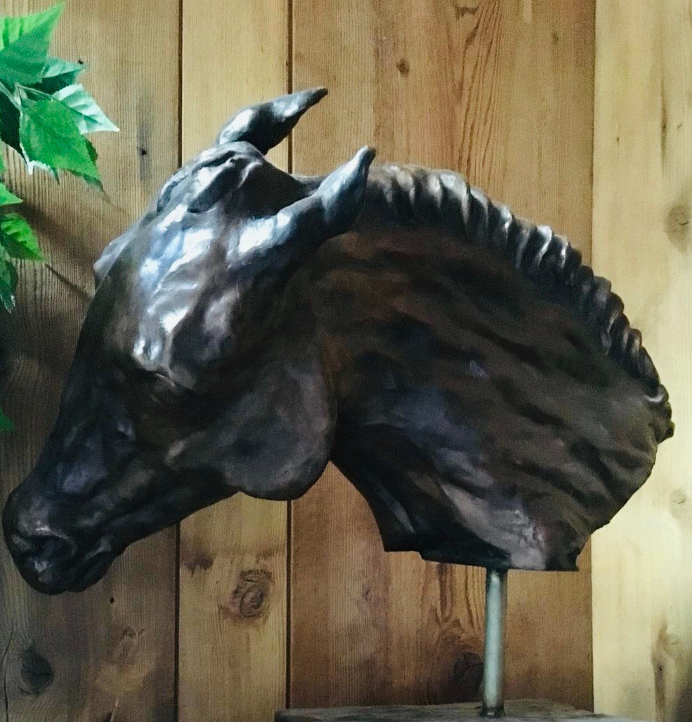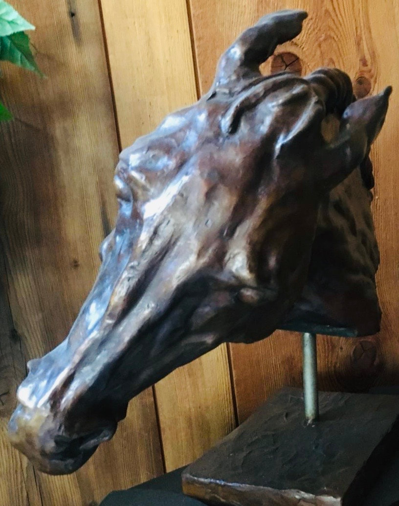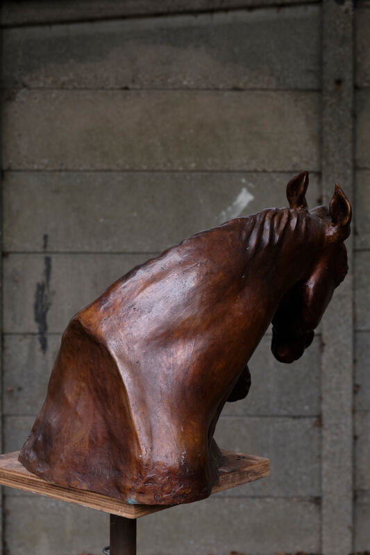 Part of a series of bronze sculptures exploring the threshold of distortion of form. Anatomically the skeleton is representative and proportionate while the contorted muscular form is closer to raised textures of cedar wood bark. It is titled War Horse to question the courage, terror and monstrosity of war, while remaining a coveted thing. The War Horse honours and beholds all unnecessary death.