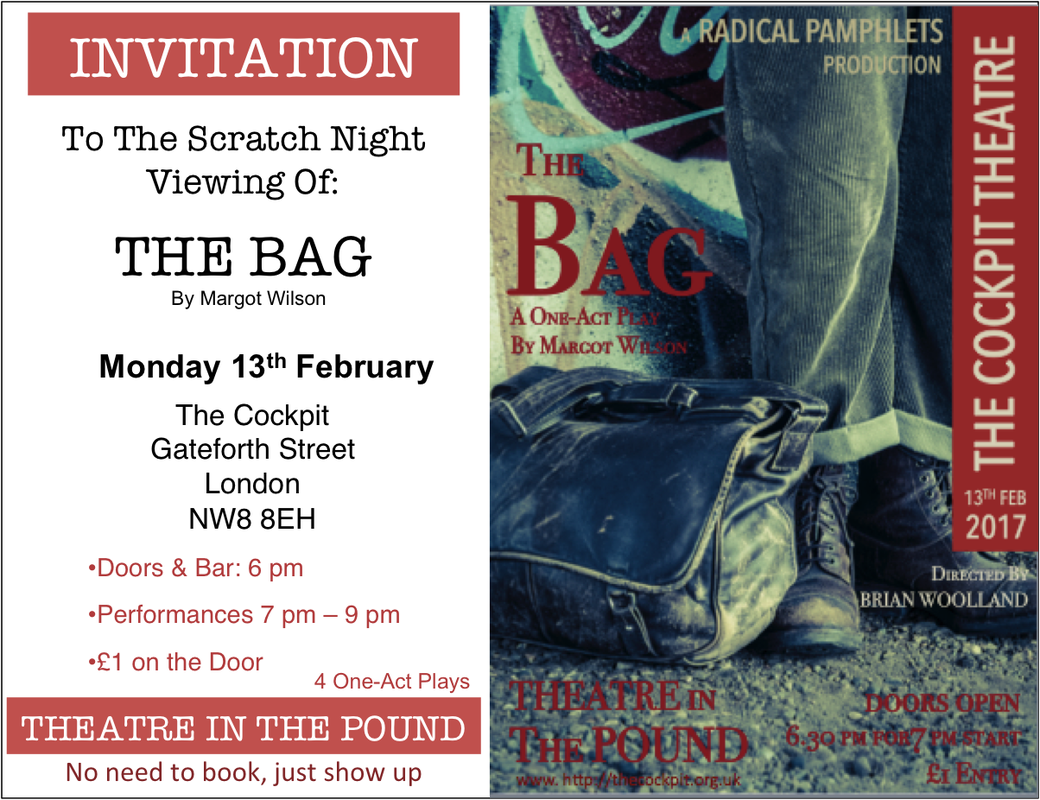 Come see my one-act play titled 'The Bag' at The Cockpit Theatre in London.